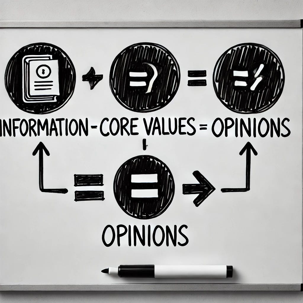 What it means is that your opinions are subject to change based on information. I may think Carl is a stand-up guy, but when I get the information that he leaves his grocery cart on the curb rather than returning it, my opinion may change. The Core Value of mine on Personal Responsibility is informing that opinion. I could later learn that Carl is an on call doctor who got paged, and while I would understand his expediency, I will still likely hold the opinion that the he could jog the cart to the corral first. That opinion will likely vary from someone else. Would my opinion change if I was the person awaiting Carl at the hospital? Maybe, but because of my Core Values, I prefer the Doctor returning the cart, I don’t want him leaving gauze in my abdomen because he was rushing to close the wound. Ya dig?